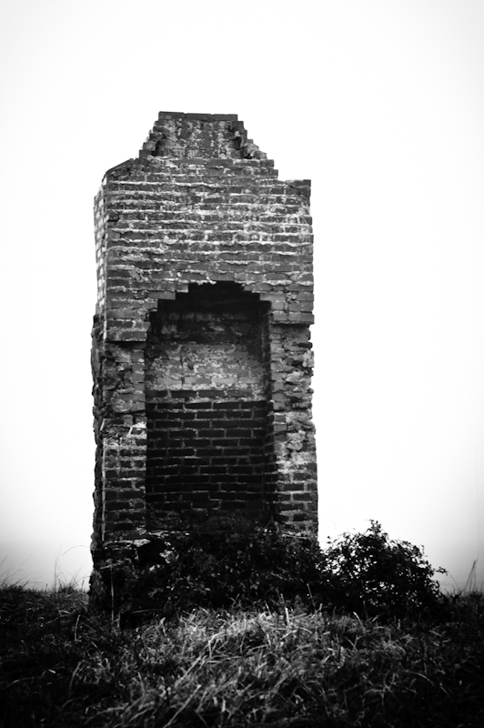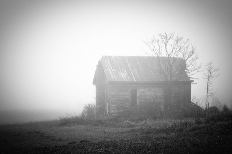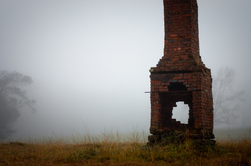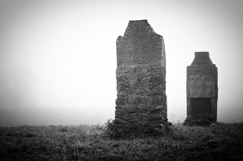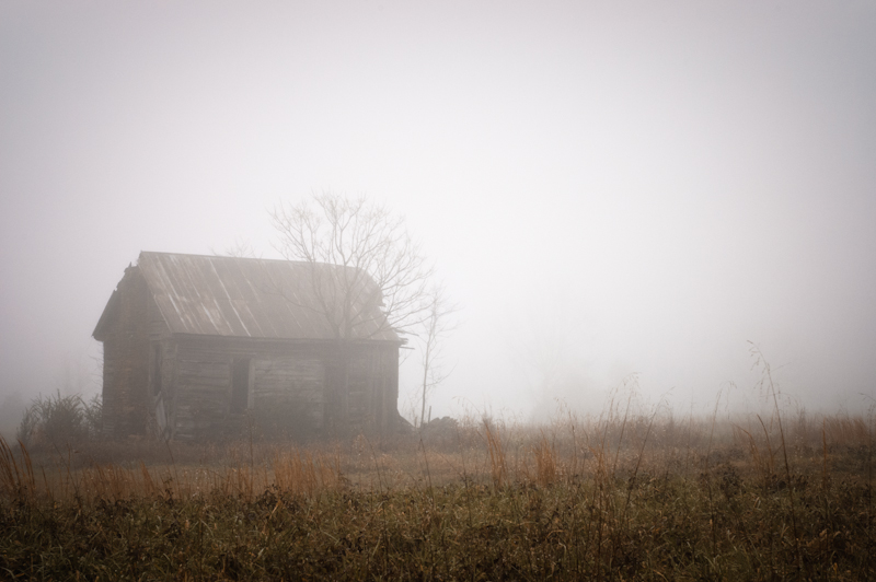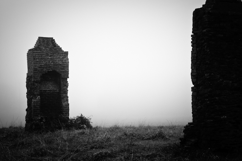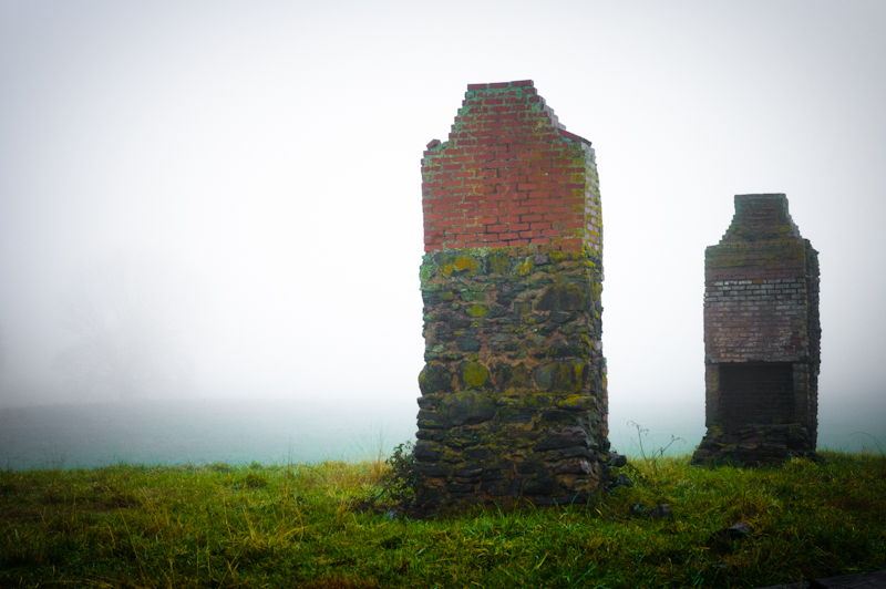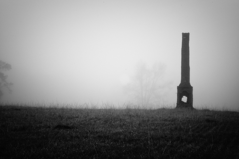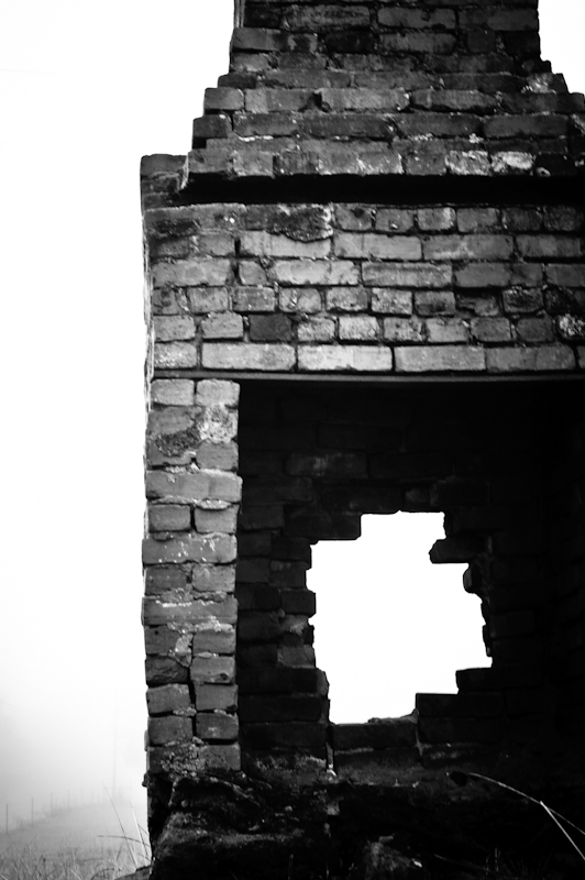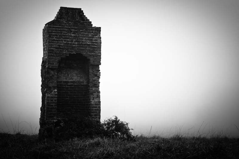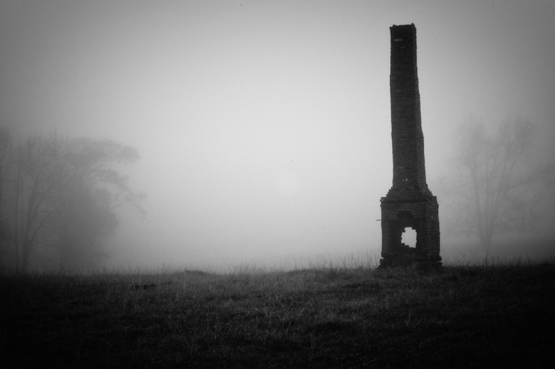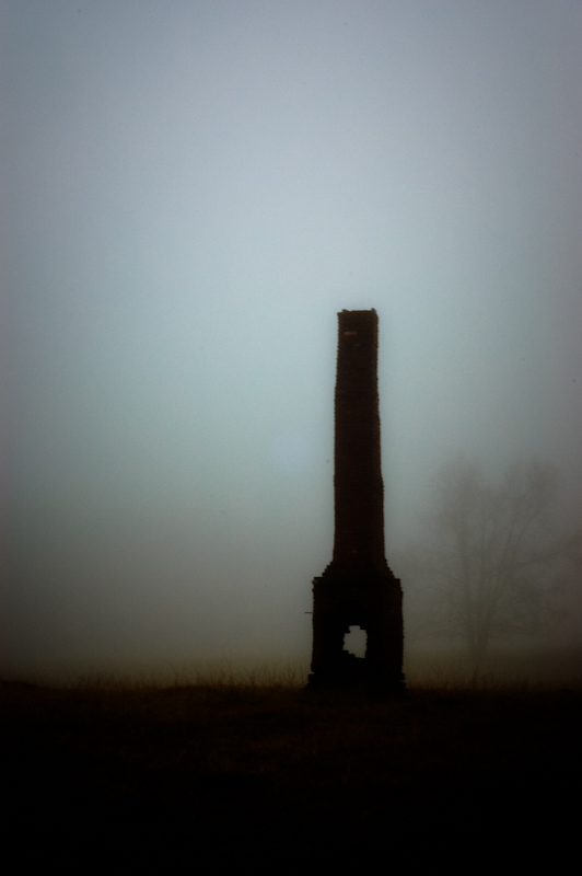 I was looking for forgotten structures like old farmsteads, chimneys, and graveyards. Subjects that already have a ghostly mood that would only be elevated by the ambiance that the fog would give. For some reason these old, abandoned structures have been an area of interest to me as of late. I find myself wanting to know what these same structures were like in their prime, piecing together the clues that are left, to come up with my own image of years past. Often times I am left with more questions than answers and I think it is that fact that makes me want to learn more.